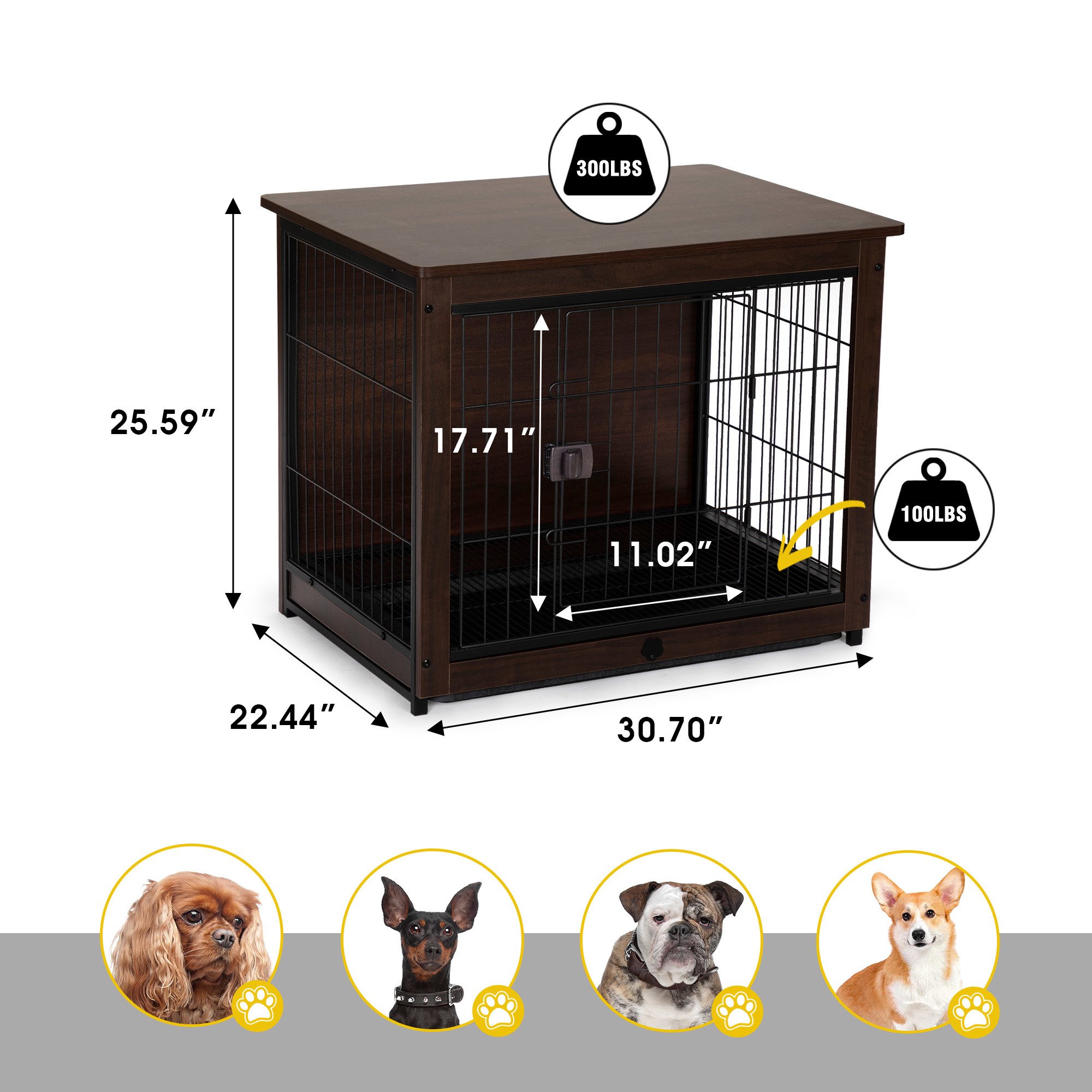 [Easy Assembly]:Assembly is required, hardware and instruction provided. You can finish this installation within a short time. Please be sure to measure your pet's height and length data before you buy, refer to the purchase advice to choose the right crate.