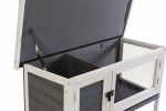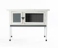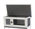 1-One-story hutch with rest zone. 2-The asphalt roof can let the hutch use outside 3-The hinged roof can open from the top. 4-Plastic pull-out tray can make the cleaning more quickly and easily. 5-Two doors only with one black butterfly locker.